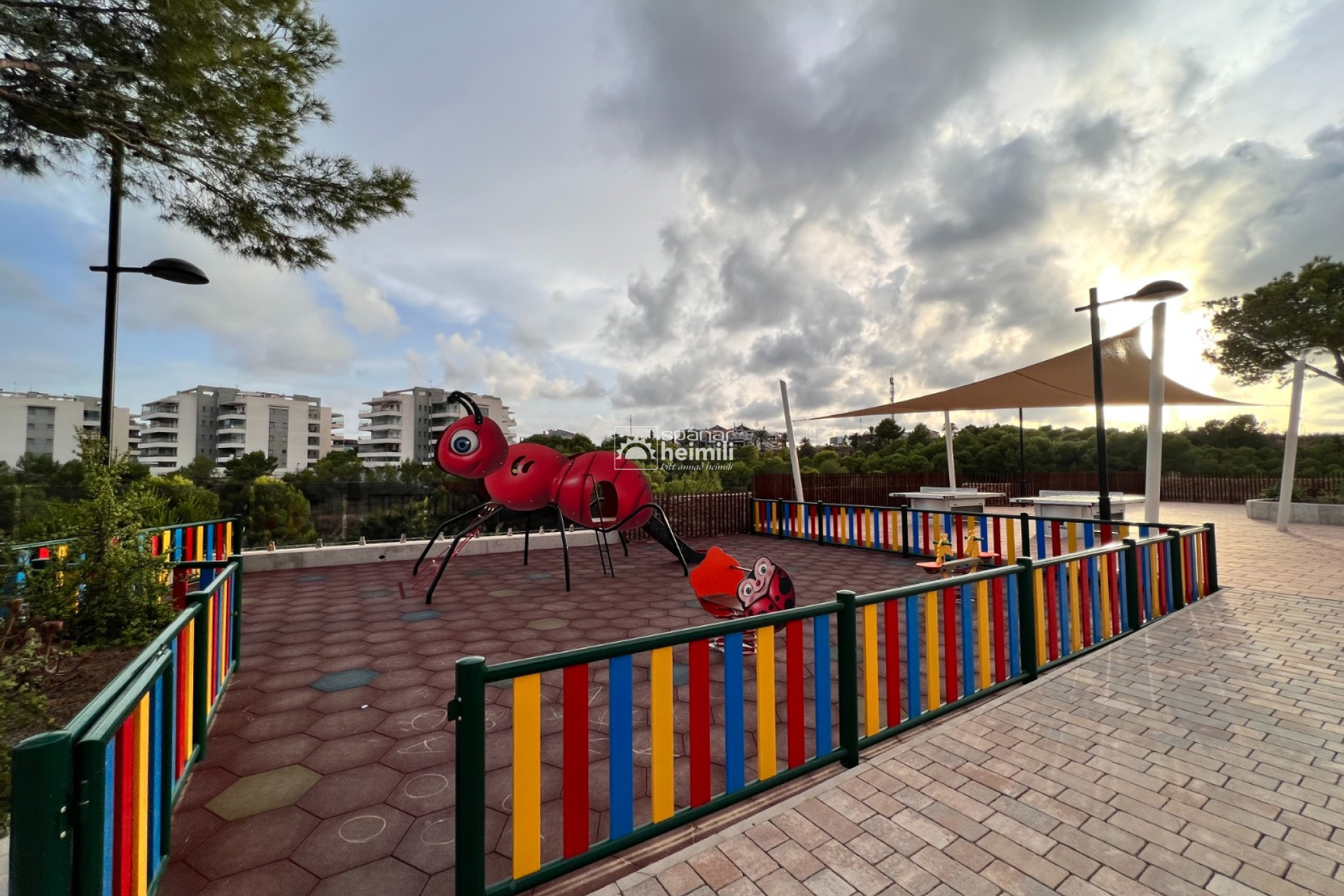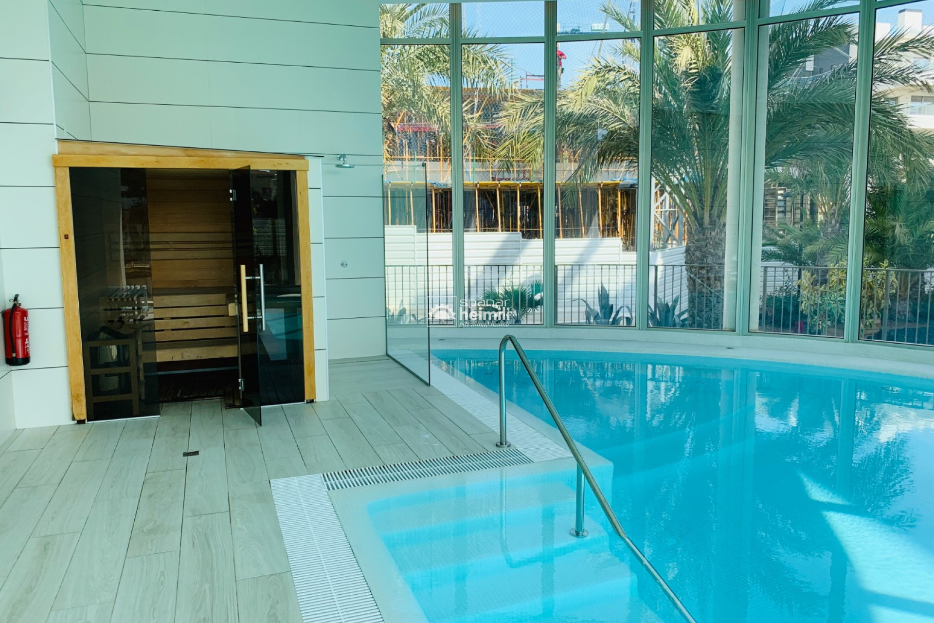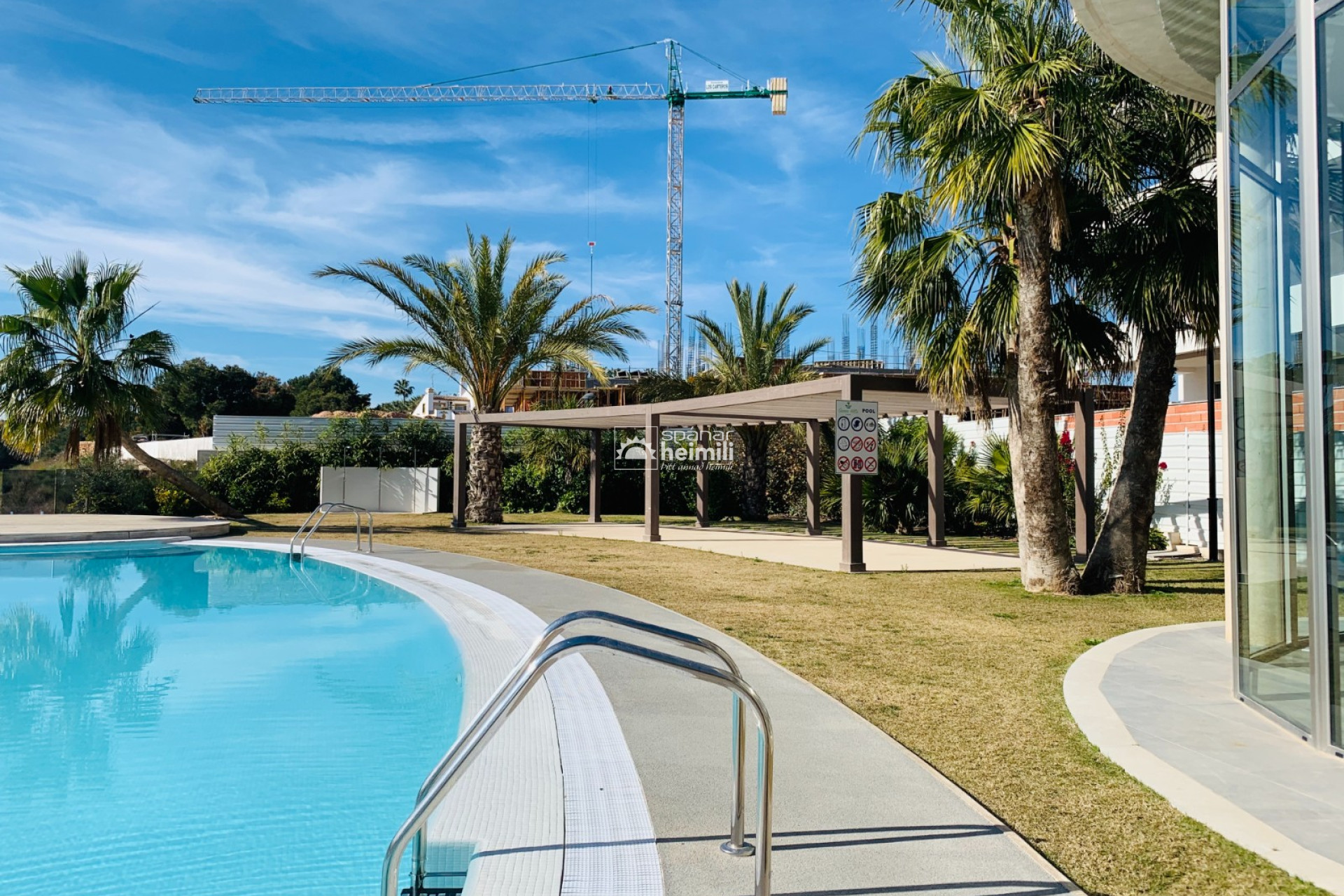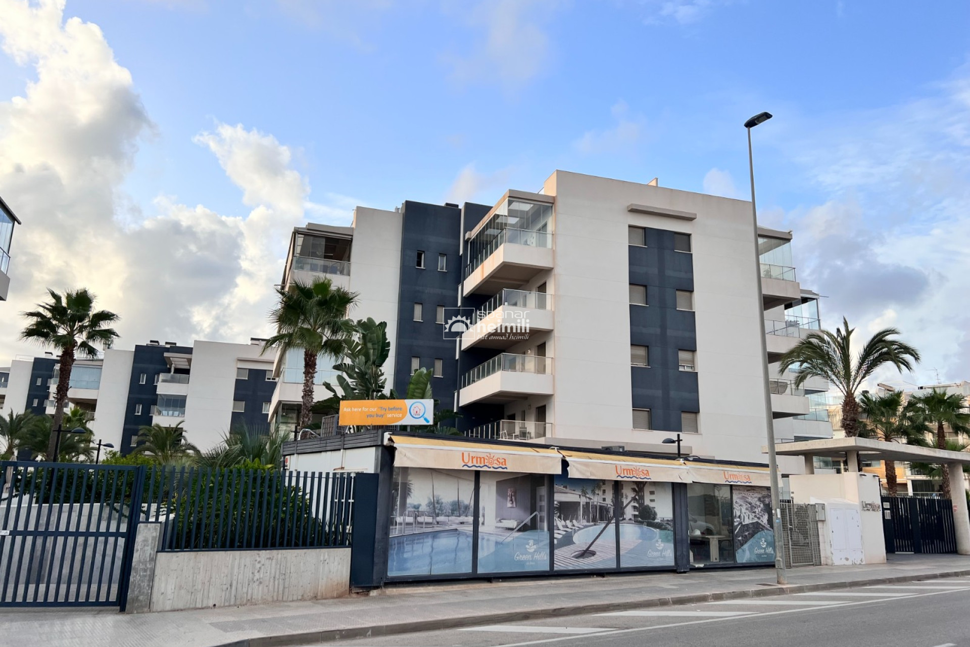 Það er fallegur sameiginlegum garði með frábærri aðstöðu, í garðinum er upphituð inni sundlaug, úti sundlaug, sauna og líkamsræktarsalur. Einnig fylgir einkabílastæði í bílastæðahúsi innan garðsins með fjarstýrðu hliði