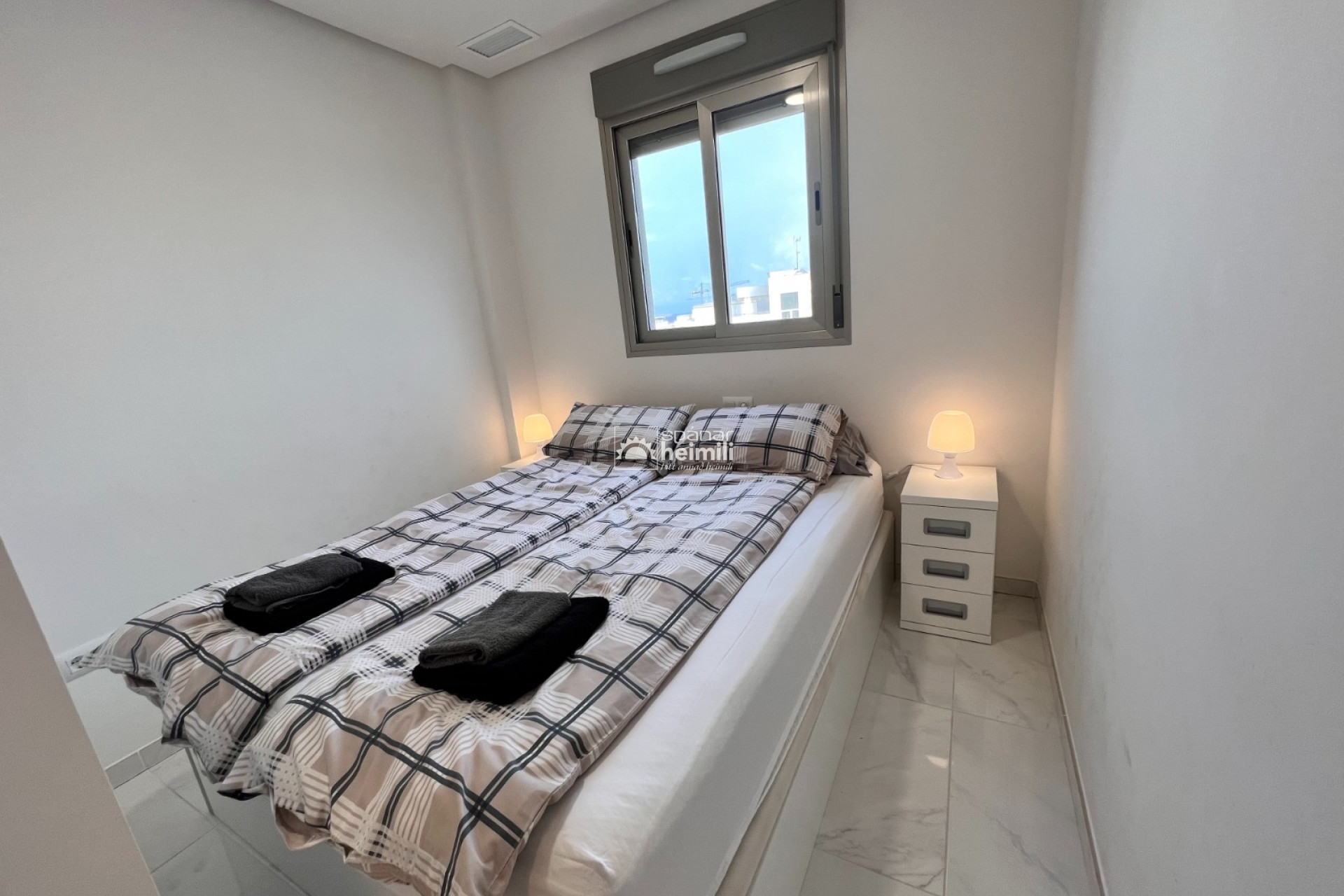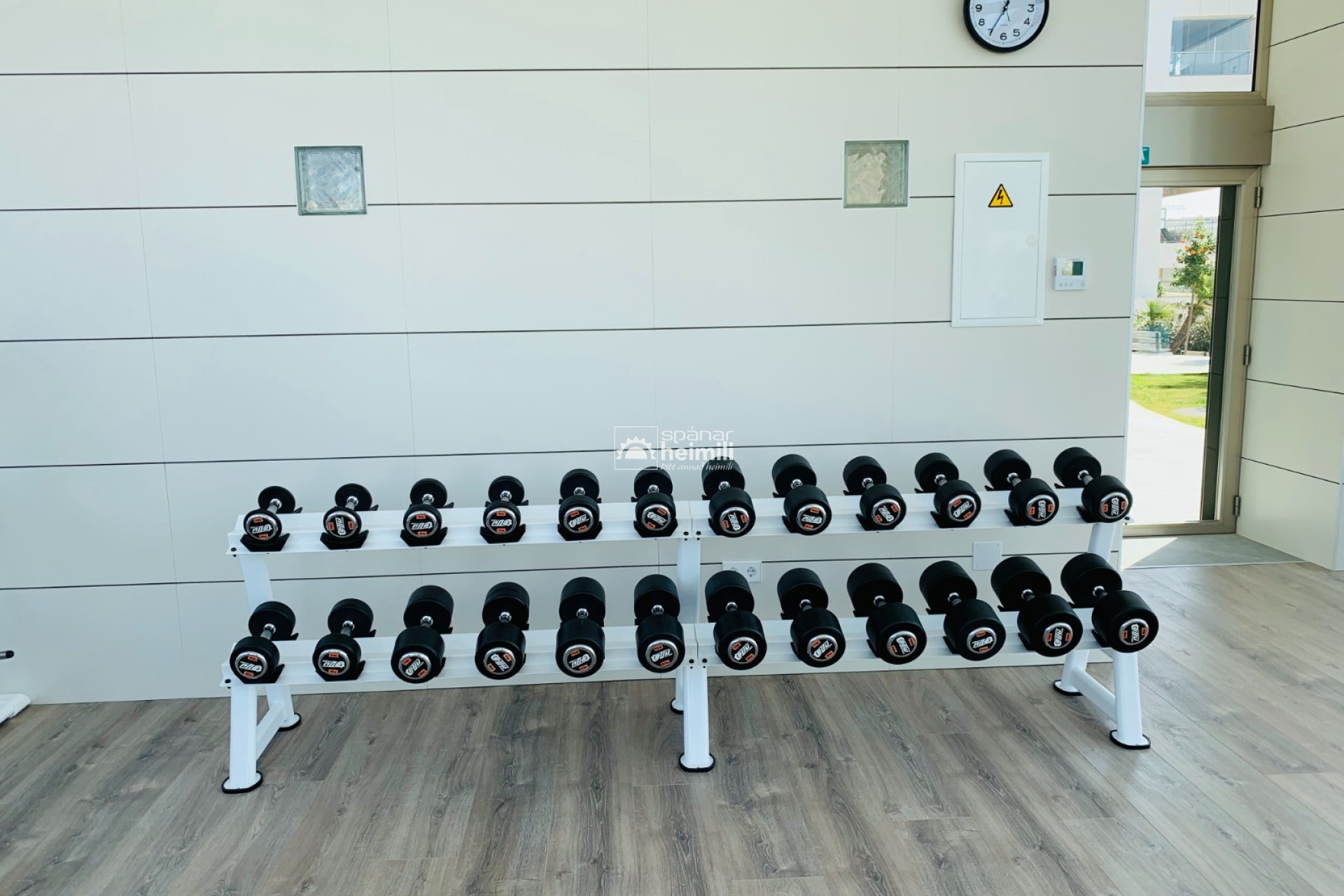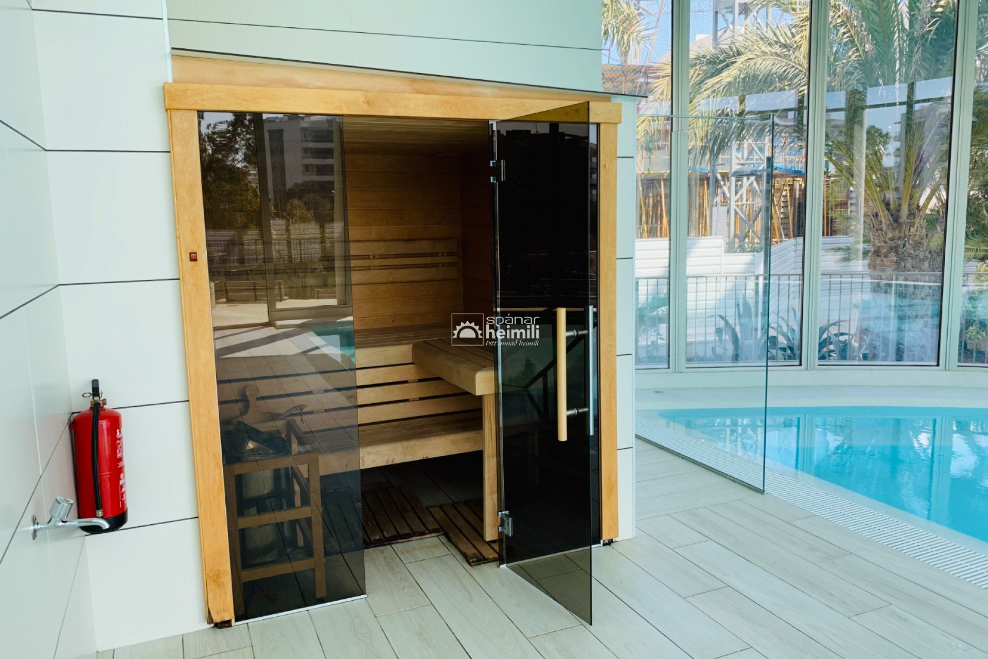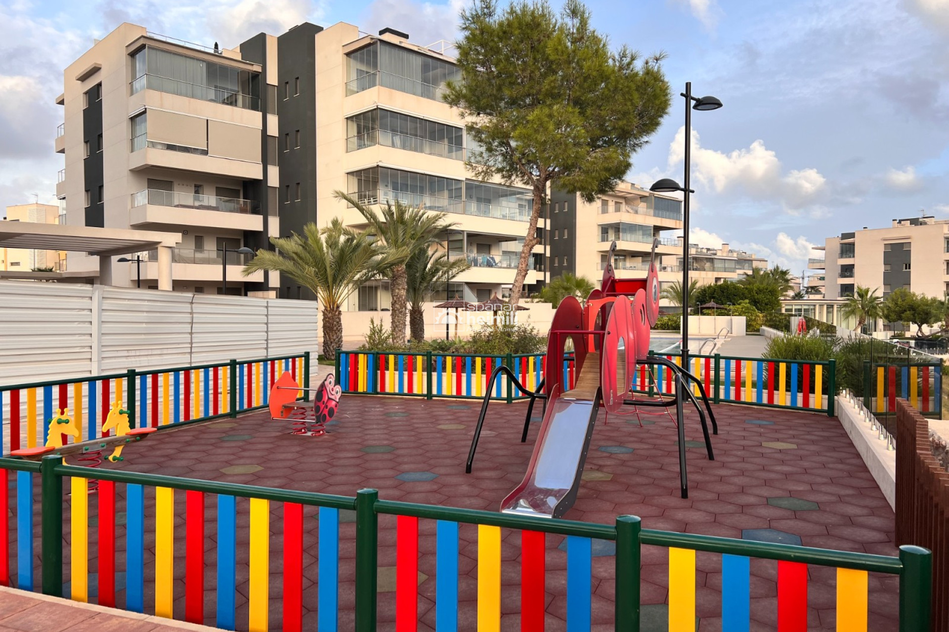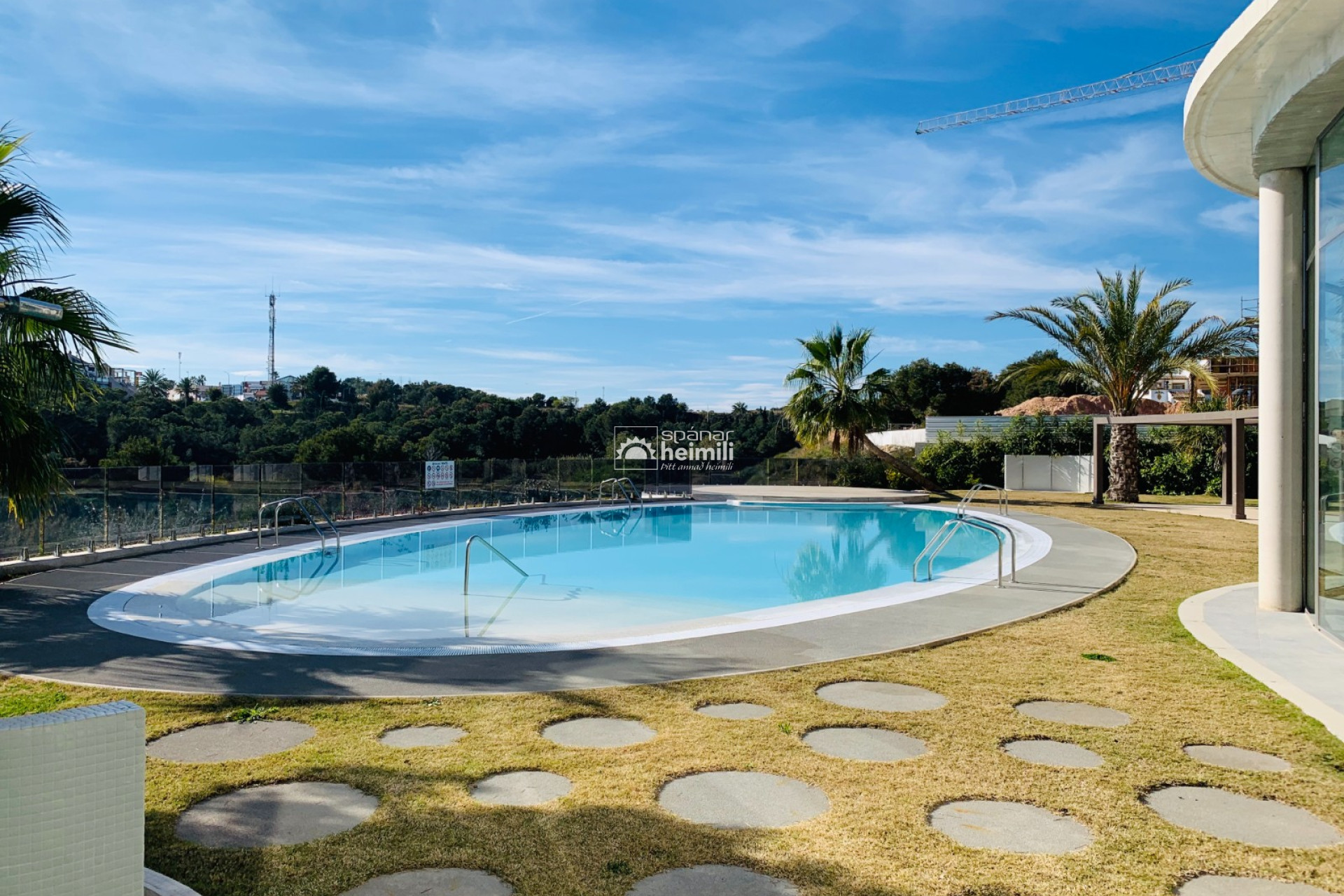 Það er fallegur sameiginlegum garði með frábærri aðstöðu, í garðinum er upphituð inni sundlaug, úti sundlaug, sauna og líkamsræktarsalur. Einnig fylgir einkabílastæði í bílastæðahúsi innan garðsins með fjarstýrðu hliði