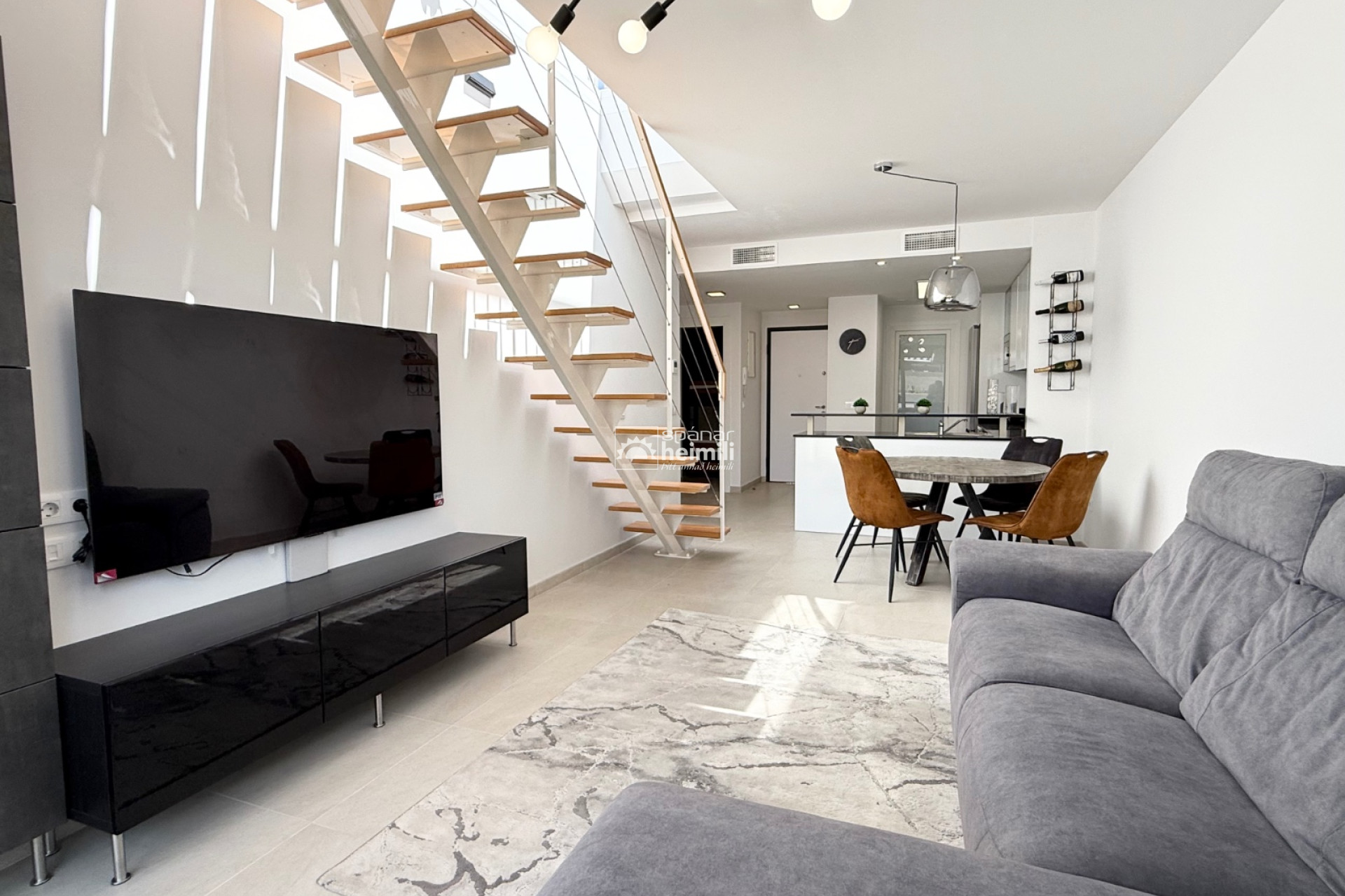 Glæsileg penthouse íbúð í eftirsótta kjarnanum Flamenca Village í Playa Flamenca. Einstakur íbúðakjarni sem sameinast af vel hirtum görðum, nokkrum sameiginlegum sundlaugum og einnig upphitaða sundlaug, líkamsræktaraðstöðu, sundlaugarbar og afslöppunarsvæði sem skapa sannkallaða „resort“ stemningu allt árið um kring