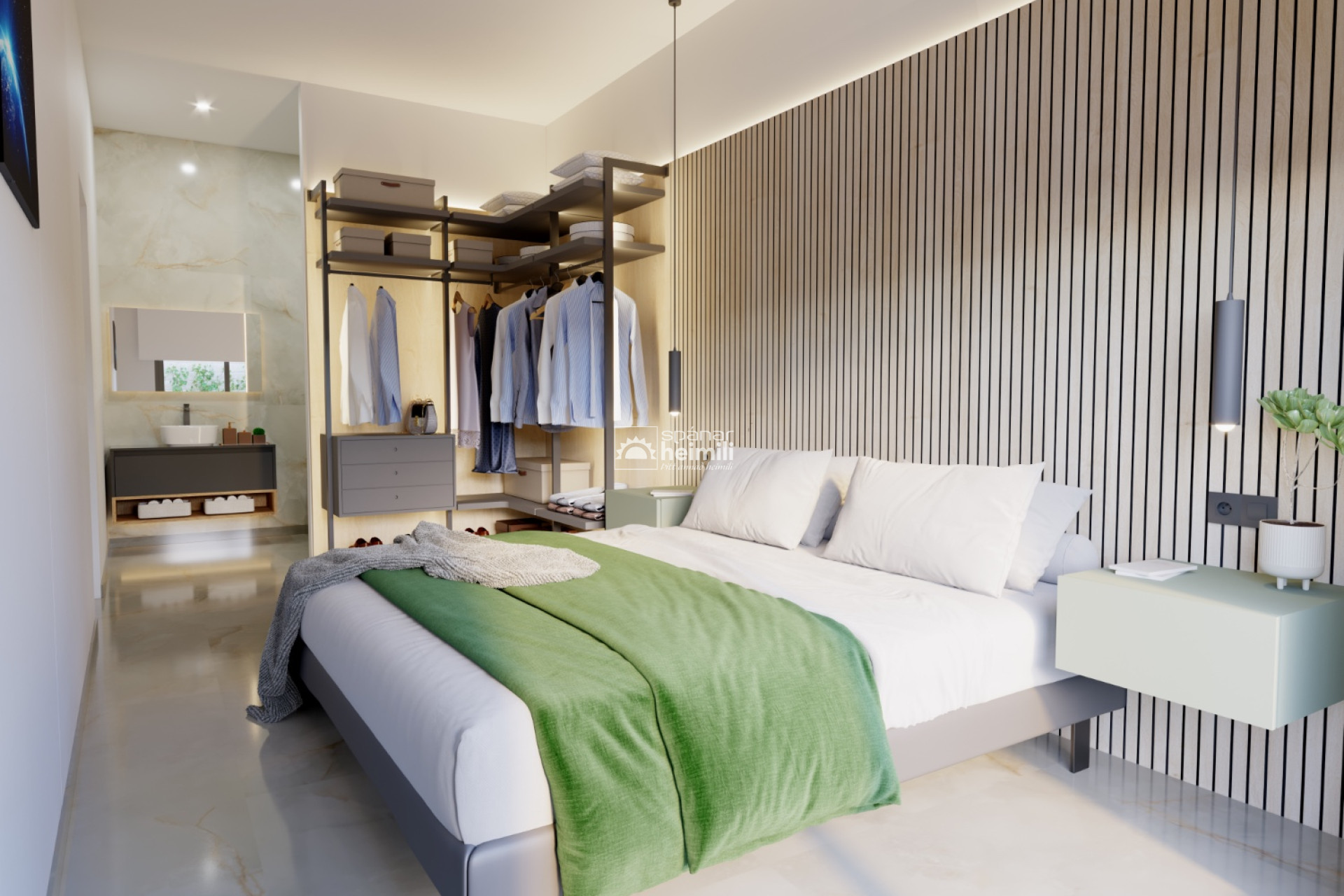Each house has three bedrooms and two bathrooms. The master bedroom has a private bathroom, and all rooms have access to the garden. The houses are high-quality and bright, offering a unique Mediterranean atmosphere.
